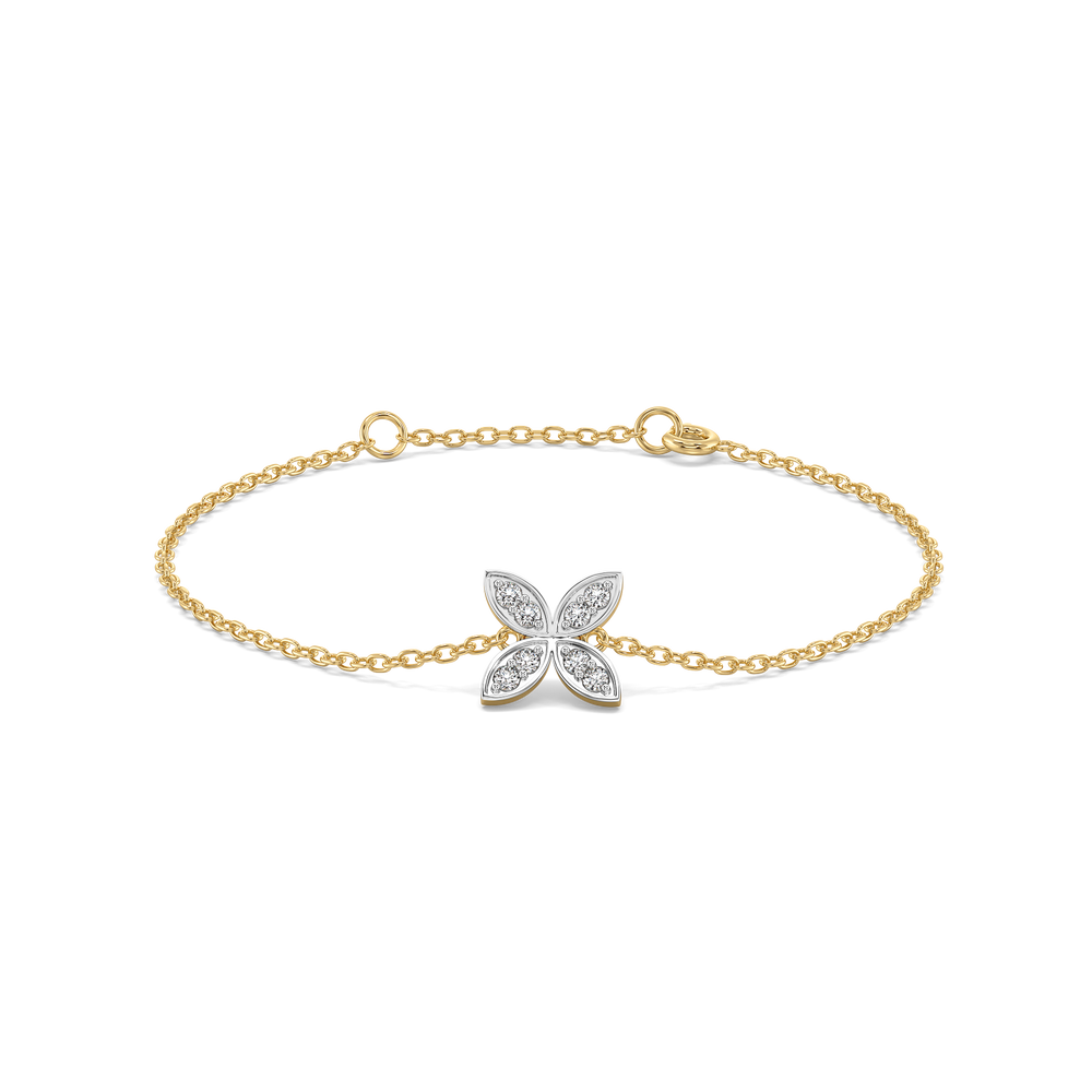 Daffodil Flora is a pure gold lab diamond fashion bracelet inspired by the gentle elegance of blooming petals. Handcrafted in BIS-hallmarked 14k pure gold, it features SGL-certified lab-grown diamonds arranged in a graceful floral pattern, capturing nature’s delicate charm in every curve.