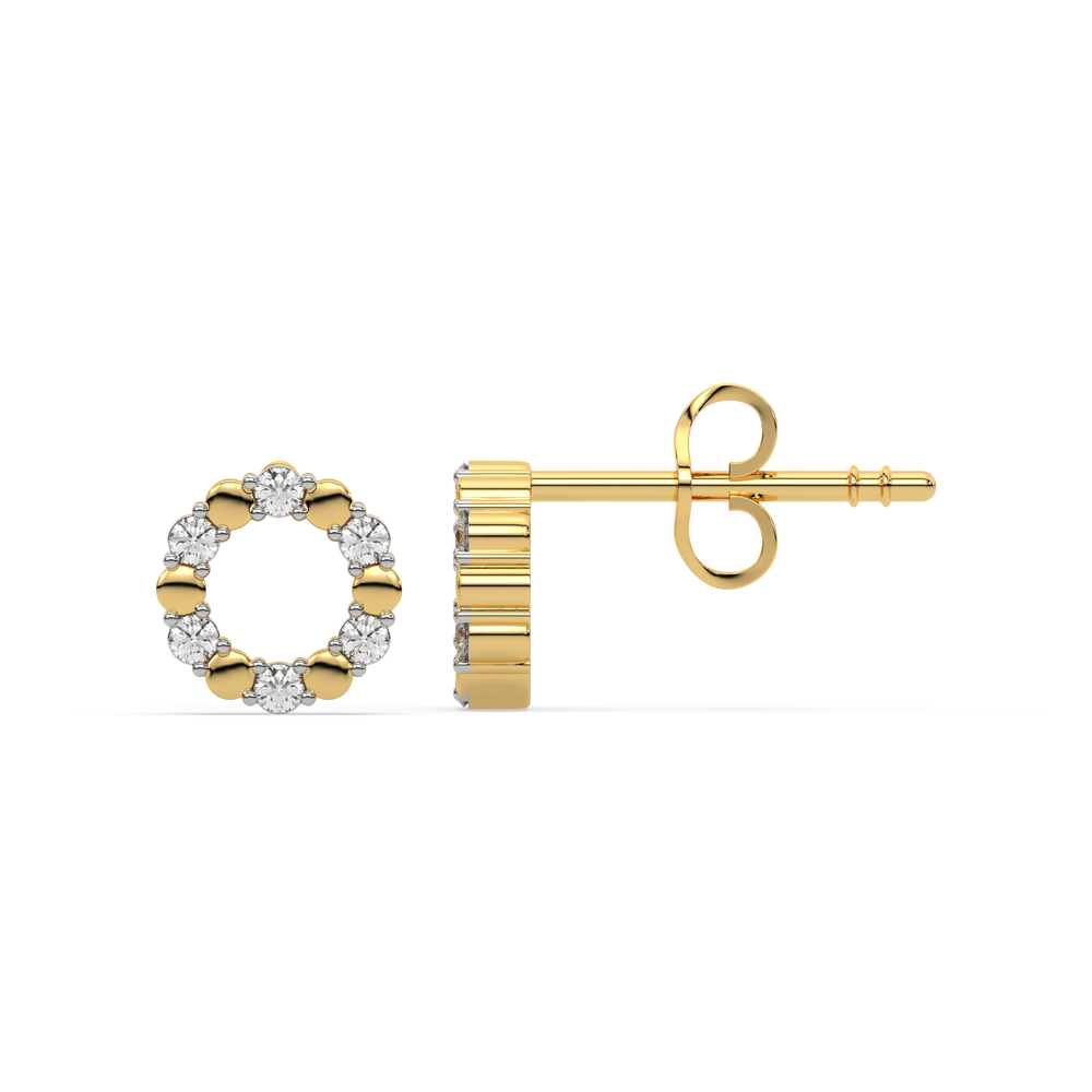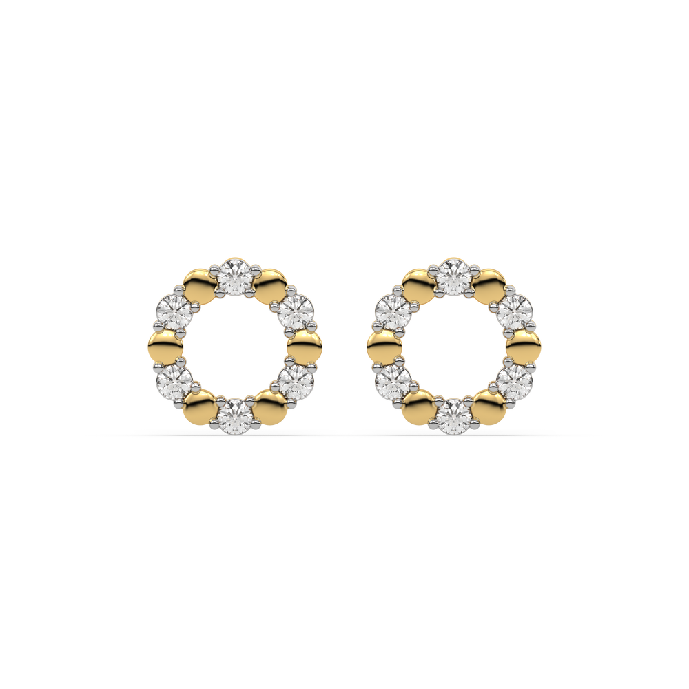 The Orbit Circle Stud features a continuous loop design, symbolizing unity with its seamless design crafted from 18kt Vermeil Gold Plating and adorned with lab-grown diamonds. Ideal for working women, this elegant piece effortlessly transitions from boardroom brilliance to evening charm.
