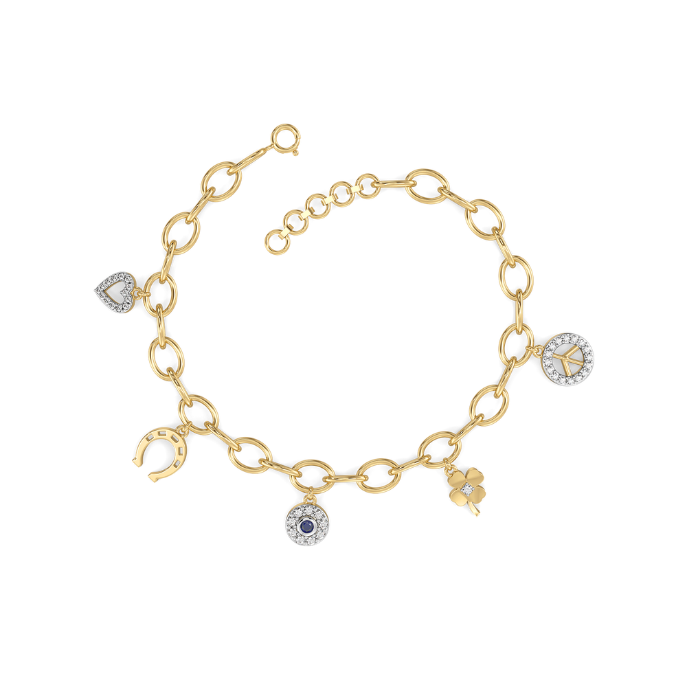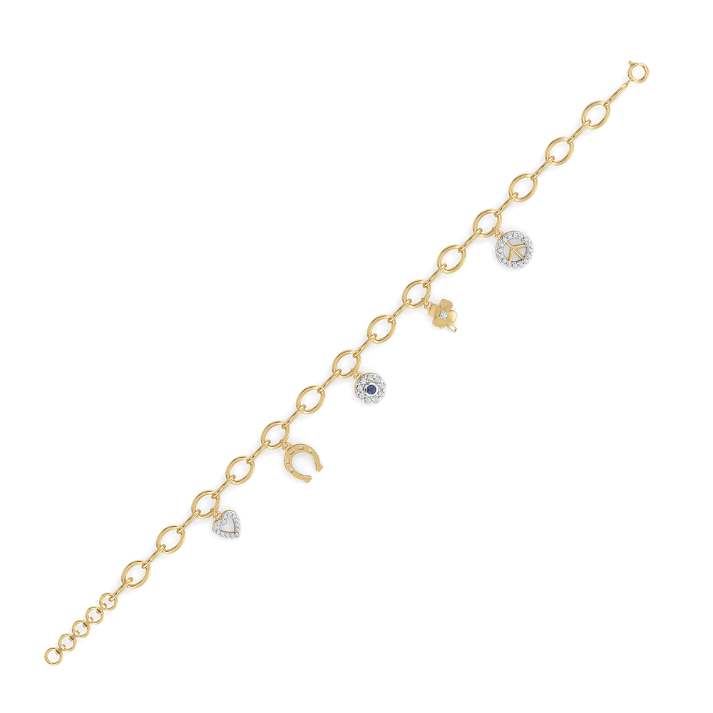 Celebrate special moments with the Evil Eye Charm Bracelet, the perfect gift for your wife on Diwali or other meaningful occasions. Featuring 0.29 ct lab-grown diamonds set in a dazzling charm design and crafted with 18kt vermeil gold plating, this bracelet captures the essence of elegance and thoughtful gifting.
