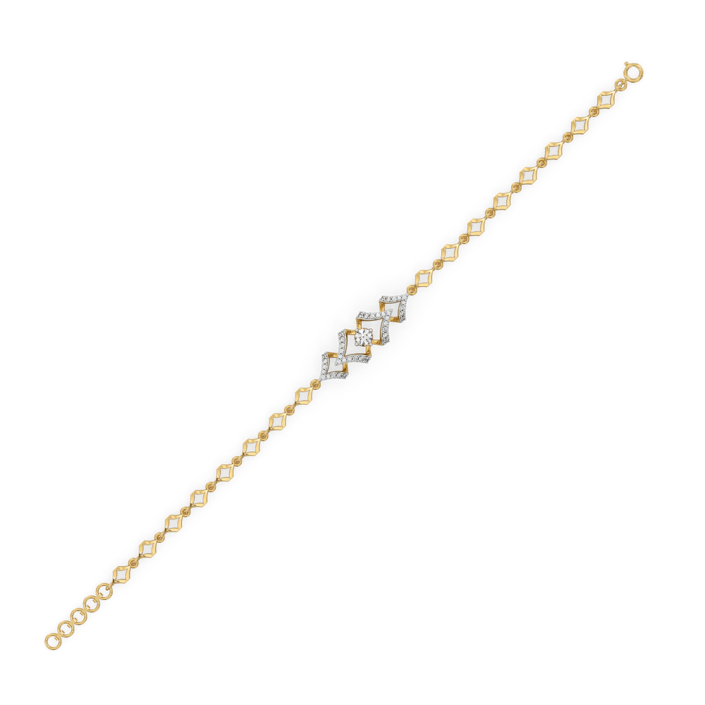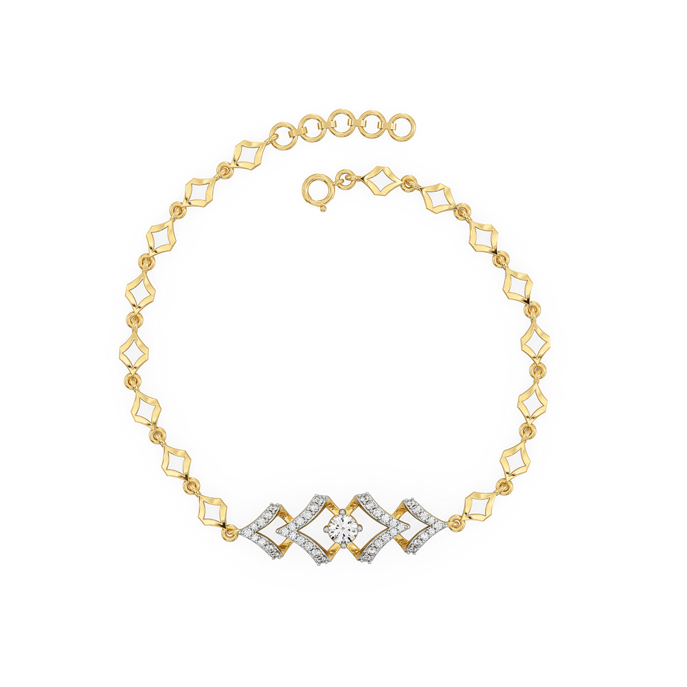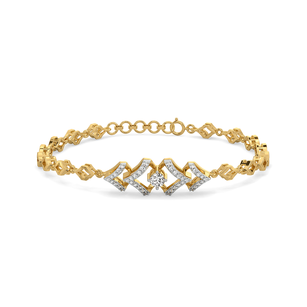 Radiate elegance and confidence with the Fierce Aura Solitaire Bracelet. Inspired by the woman who commands attention with every step—graceful yet unapologetically bold. This bracelet features a 0.47 ct lab grown diamond set in a bold diamond-shaped design, beautifully framed by 18kt Vermeil Gold plating. Its 3 Dimensional and modern design adds a refined edge, making it the perfect accessory to elevate both casual and formal outfits.