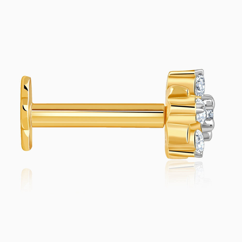 This pure gold nose pin for women features a floral-inspired design studded with lab-grown diamonds.