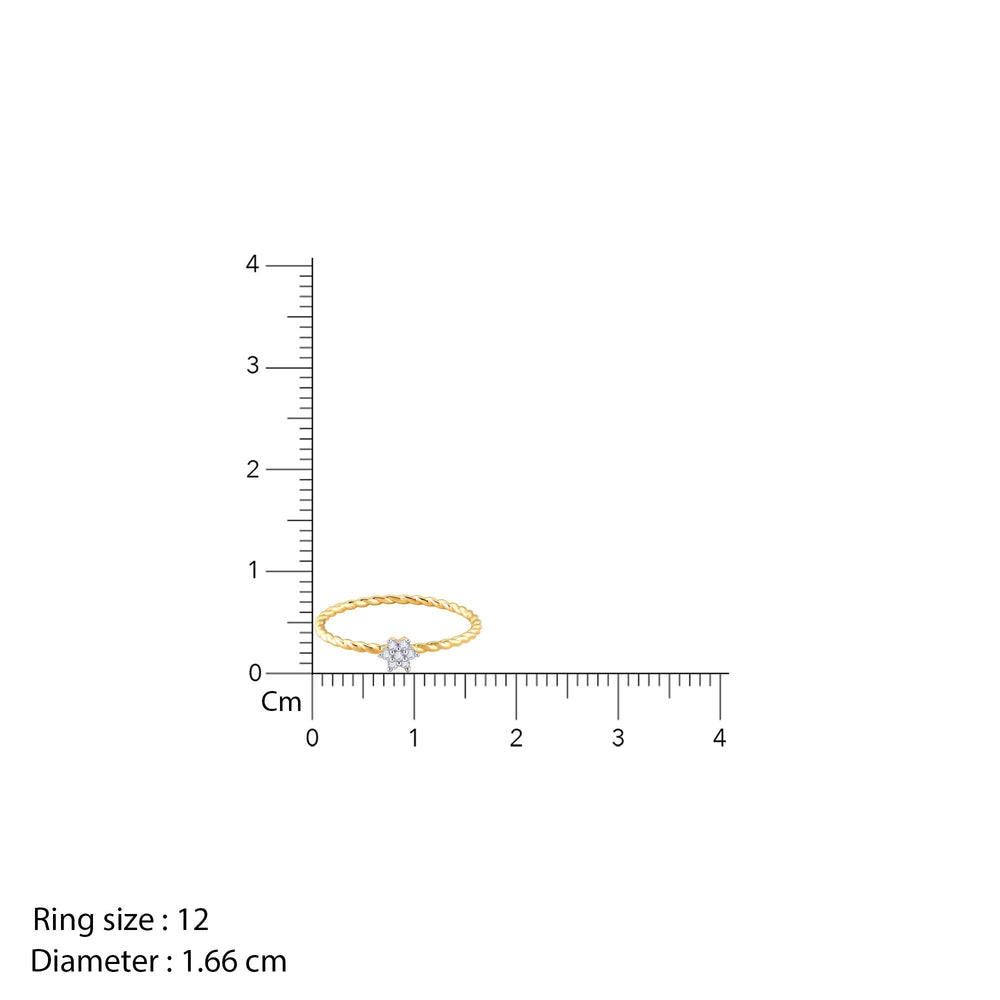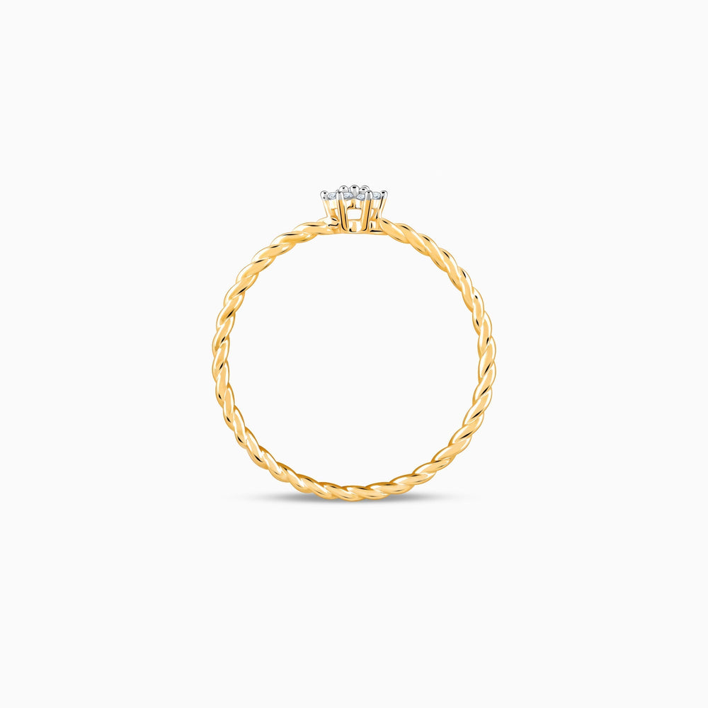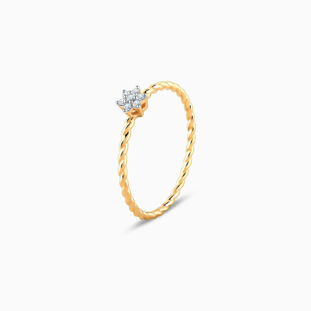 This gold ring has a cute flower design studded with lab-grown diamonds in the centre of a twisted ring band.