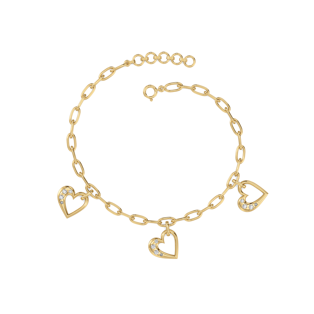 "This Valentine’s Day, let your love unfold with the Hearts Unfold Bracelet. Crafted with care in 18kt Gold Vermeil and set with dazzling lab-grown diamonds, each heart charm on this bracelet tells a story of growth, connection, and endless possibilities. As each charm represents a piece of the journey, it reflects how love blossoms and evolves, growing deeper with time.