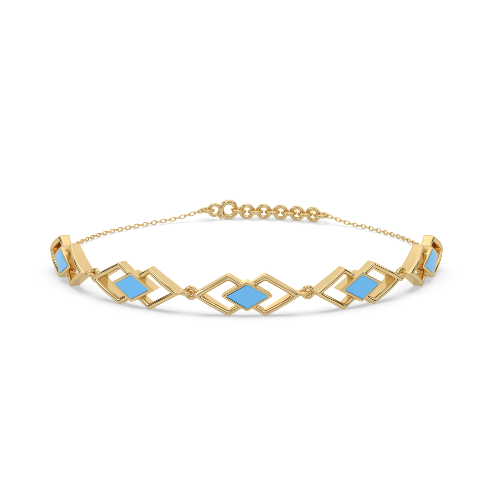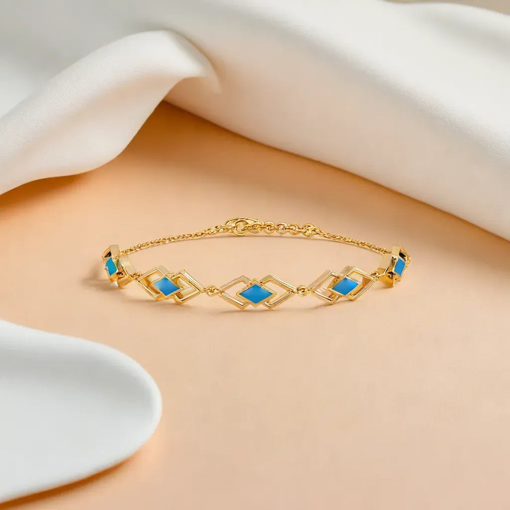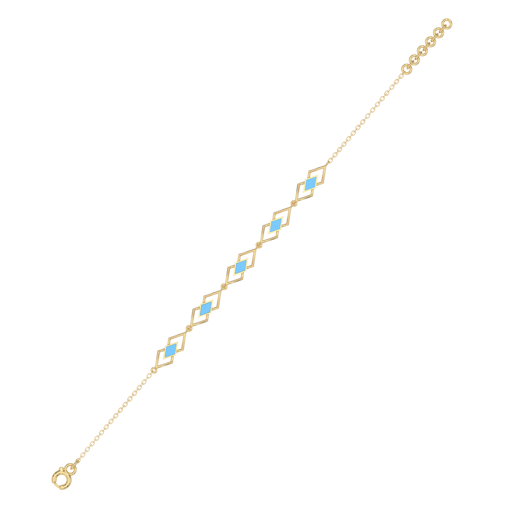 Add a fresh pop of color to your look with the Azure Geometric Fashion Bracelet, designed in 18kt vermeil gold plating and featuring vibrant icy blue enamel accents. This playful and youthful bracelet, crafted for girls, brings a fun twist to your everyday style.