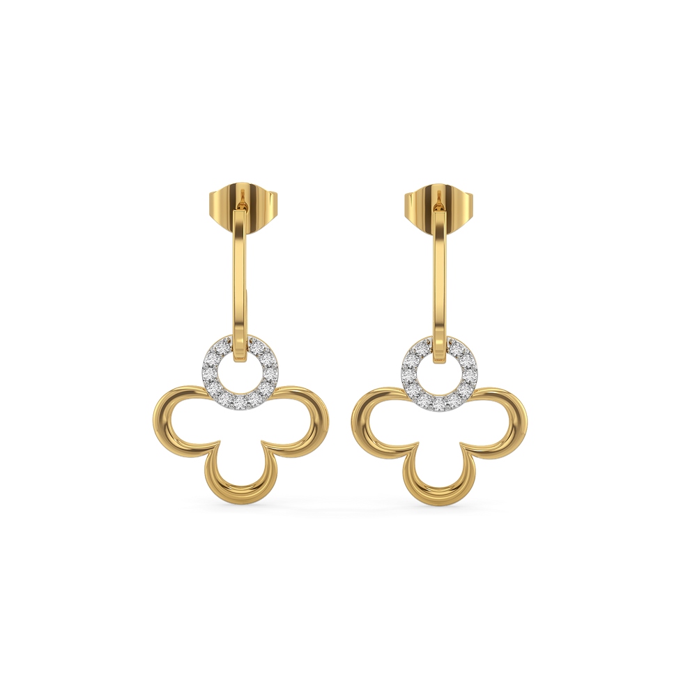 Celebrate moments big and small with the Lucky Bloom Drop Earrings in 18kt Vermeil Gold plating. Each earring features a petite clover design highlighted with 0.41 ct of lab-grown diamonds (0.14ct ). Lightweight and easy to wear, they’re a joyful gift for girls on birthdays, milestones, or festive occasions—offered at the best price without compromising on charm.