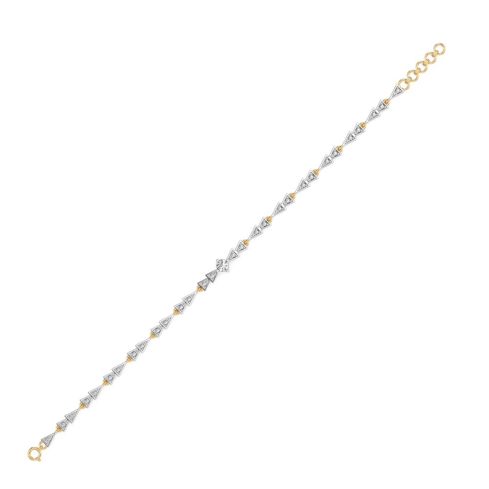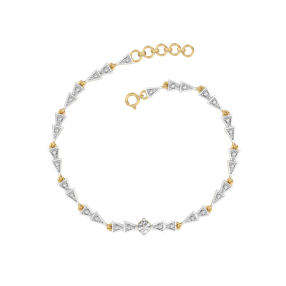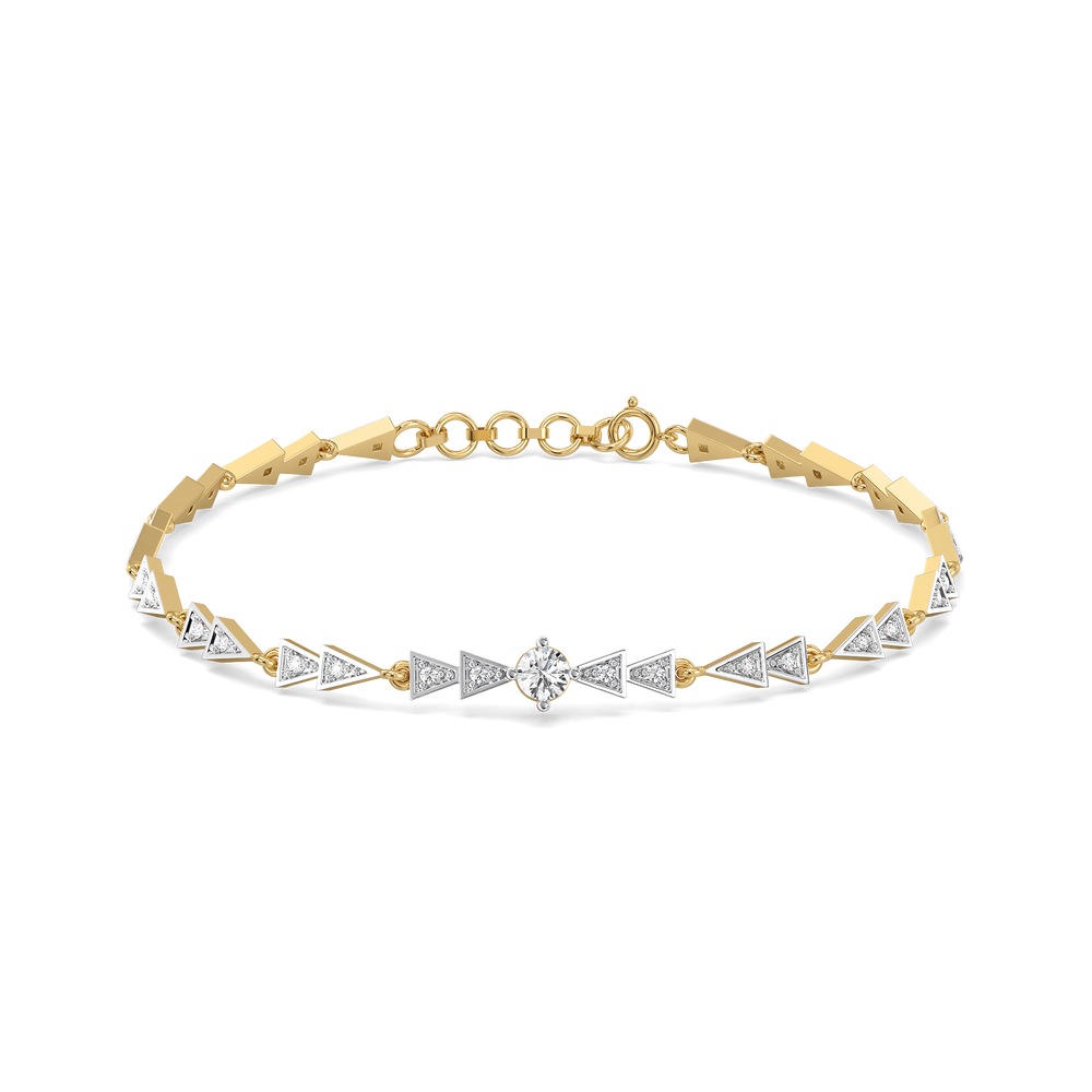 The Majestic Arc Solitaire Bracelet holds the fluidity of a bracelet, featuring a 0.20 ct lab-grown solitaire diamond at its center. The surface prong-setting enhances the brilliance of each diamond, allowing it to shine with timeless elegance. Inspired by the grand, sweeping curves of architectural arches, this piece speaks to strength, grace, and lasting beauty.
