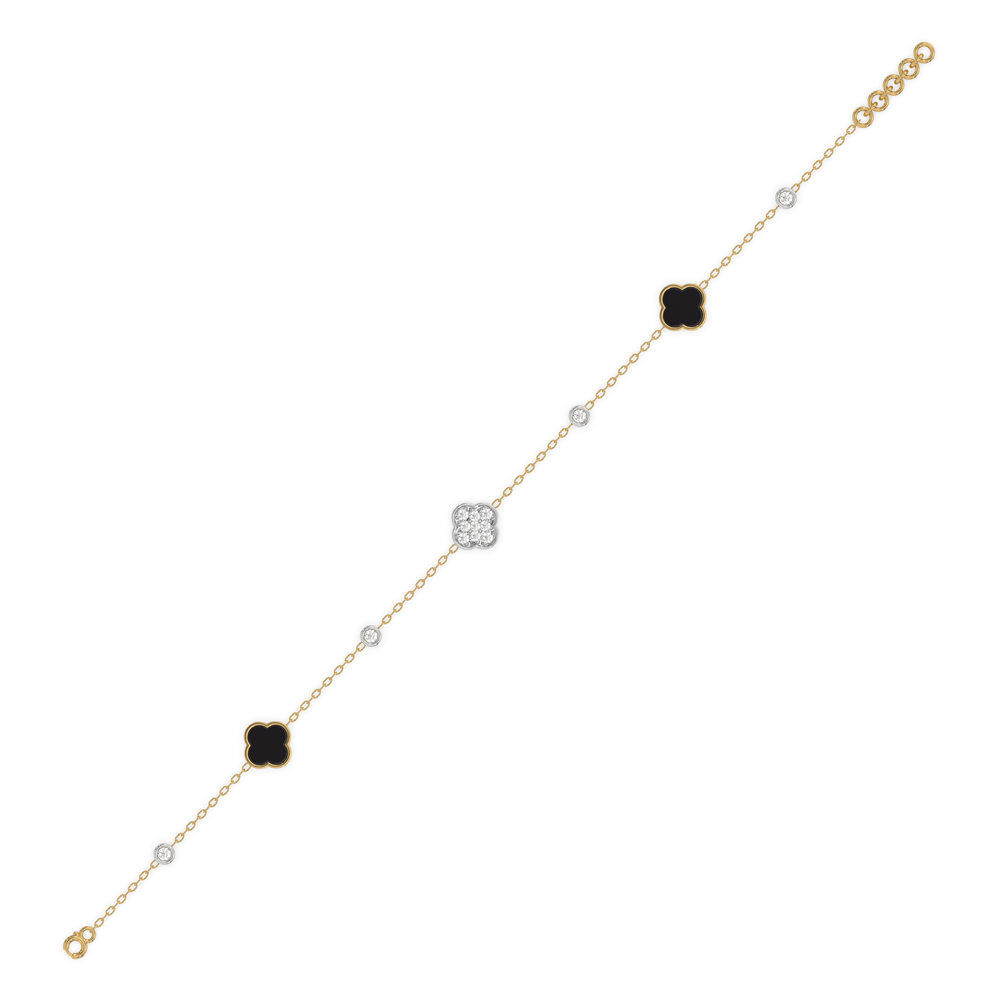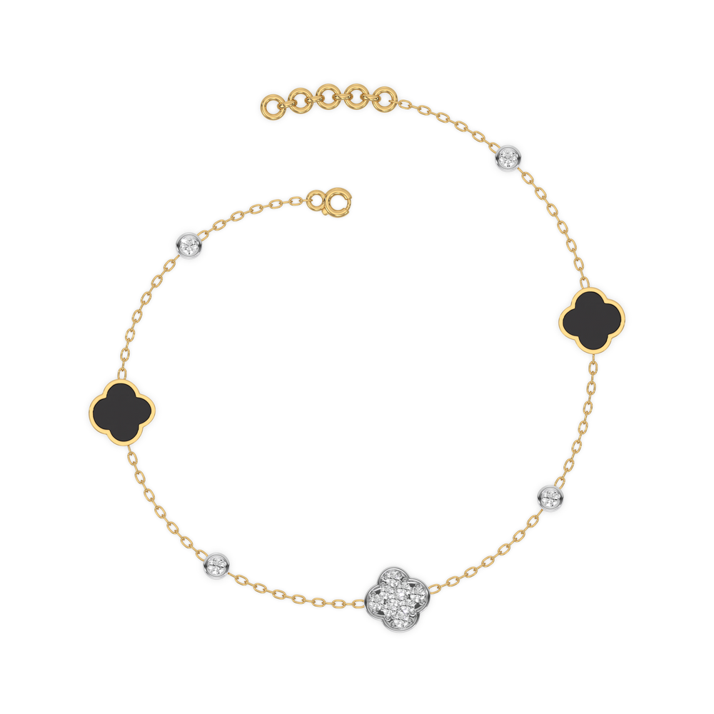 Add a touch of nature’s magic with the Midnight Enchanted Clover Bracelet. Featuring black enamel and 0.20 ct of lab-grown diamonds, this bracelet effortlessly combines echantment and sustainability. Crafted in 18kt Vermeil Gold Plated, it’s perfect for both a night out or a cozy evening in.