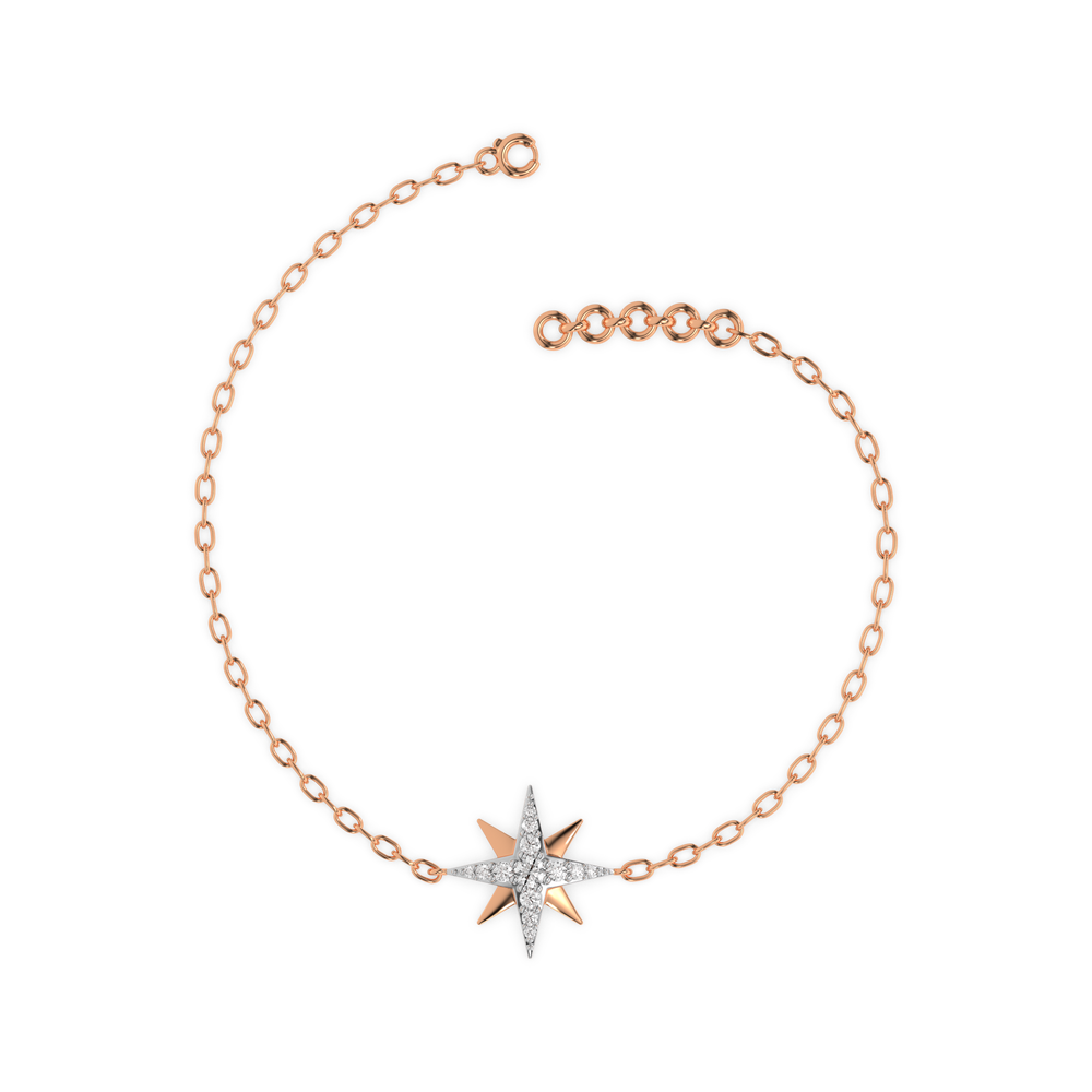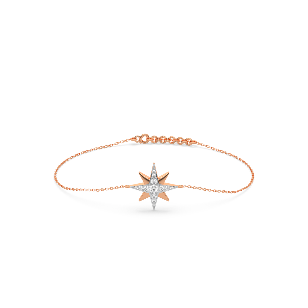 Embrace your inner star with the NorthStar Bracelet. Featuring a dazzling single star, this bracelet radiates with brilliance, thanks to 0.33 ct of lab-grown diamonds in FG color and VS-SI clarity. Crafted in luxurious 18kt vermeil rose gold plating, it adds a cosmic touch to any outfit.