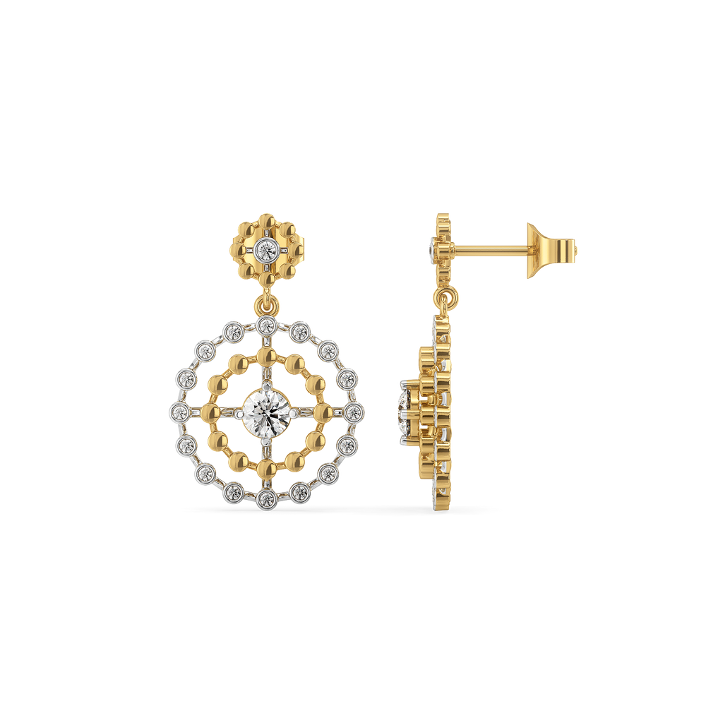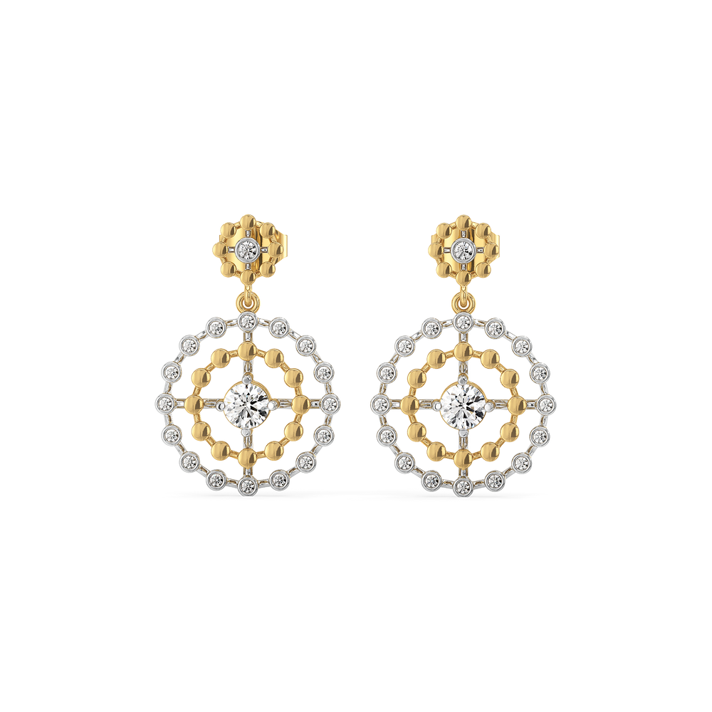 Grace in motion—Rain-Dance Drop Earrings reflect the way rain dances along leaves before falling. Multiple bezel-set diamond (0.27 ct) anchors the design, leading to a prong-set 0.20 ct solitaire suspended in 18kt Gold Vermeil plating on 925 Sterling Silver. Fluid and feminine, they’re perfect for a festive celebration or elegant evening.
