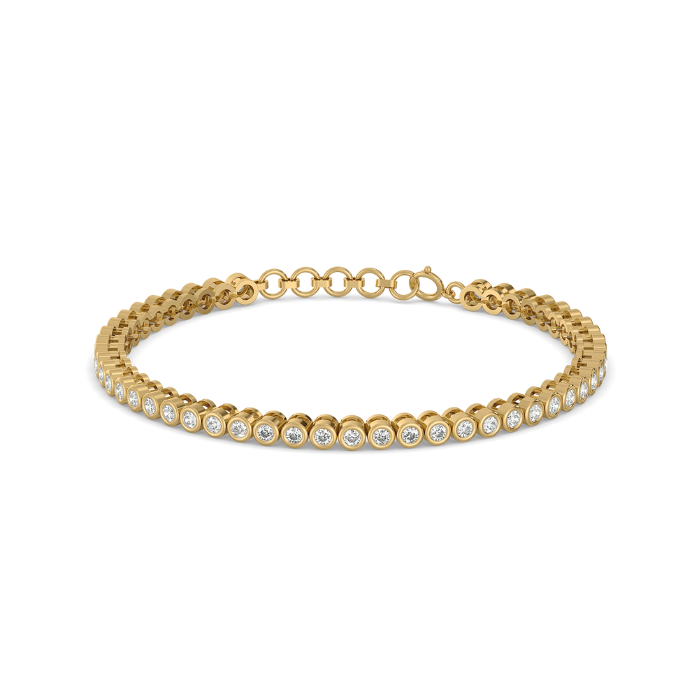 The Rain-Dance Tennis Bracelet draws from the rhythm of rain trailing down a windowpane—soft, fluid, and quietly mesmerizing. Each bezel-set lab-grown diamond (approx. 1.68 ct total) is a gentle droplet in motion, flowing effortlessly across 18kt Gold Vermeil plated on 925 Sterling Silver. A tribute to nature’s harmony, this bracelet makes a beautiful gift for festive occasions, pair it with you Solitaire Ring for a graceful look.