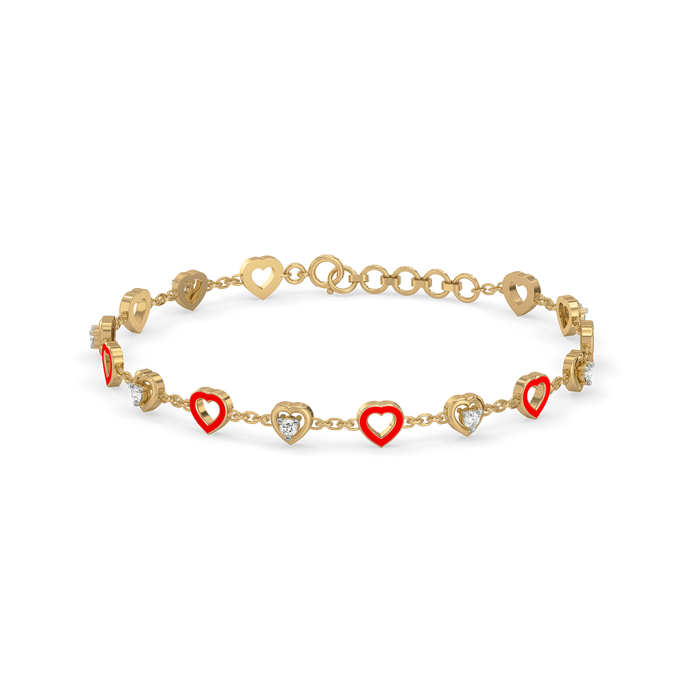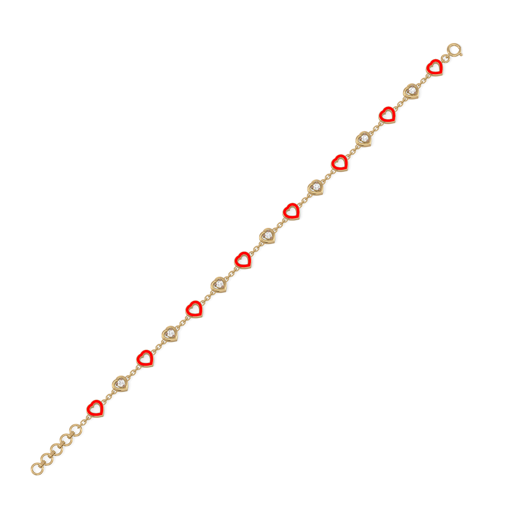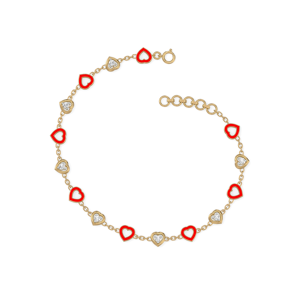 Add a fun twist to your look with the Red Heart Stations Bracelet, featuring heart-shaped stations with vibrant red enamel. Crafted in 18kt vermeil gold plating and adorned with 0.24 ct of lab-grown diamonds in FG color and VS-SI clarity, this bracelet is a perfect accessory for girls who love playful, meaningful designs.