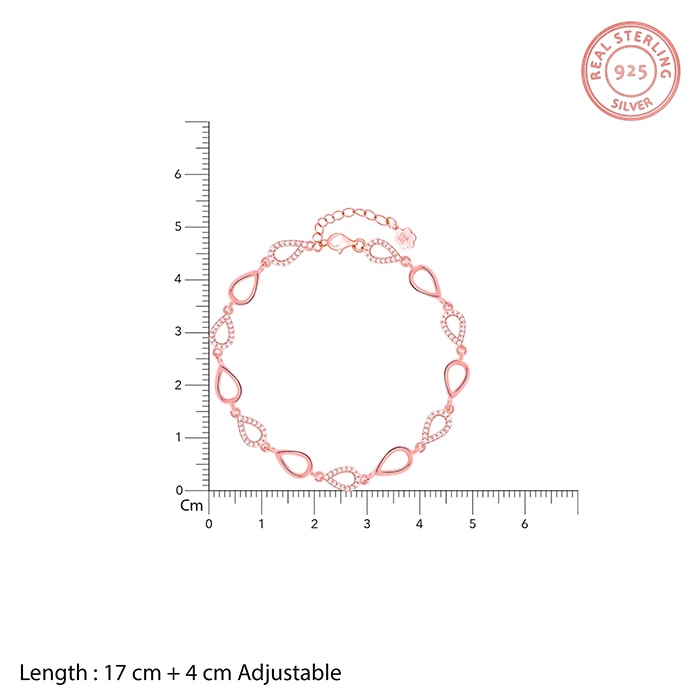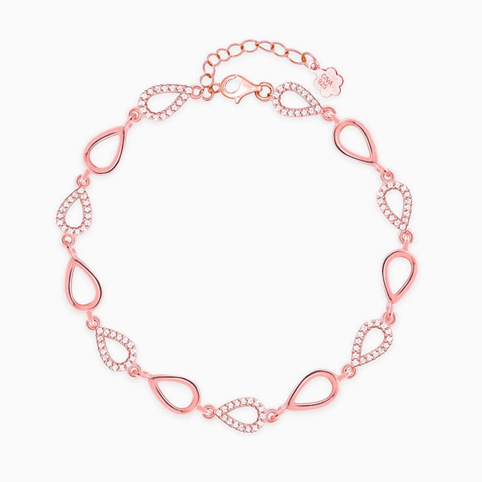 This rose gold bracelet has droplet motifs with zircons studded on alternative drops.