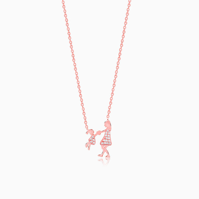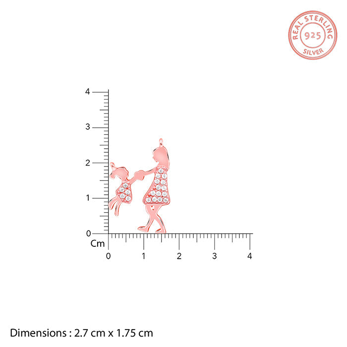 This rose gold plated necklace for women features a stylised mom and daughter design studded with zircons.