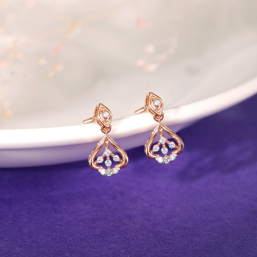 These pure rose gold earrings feature a pear design, adorned with lab-grown diamonds.