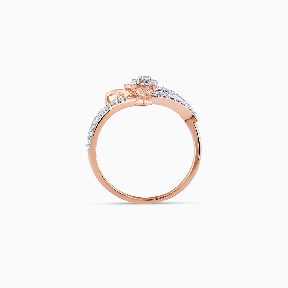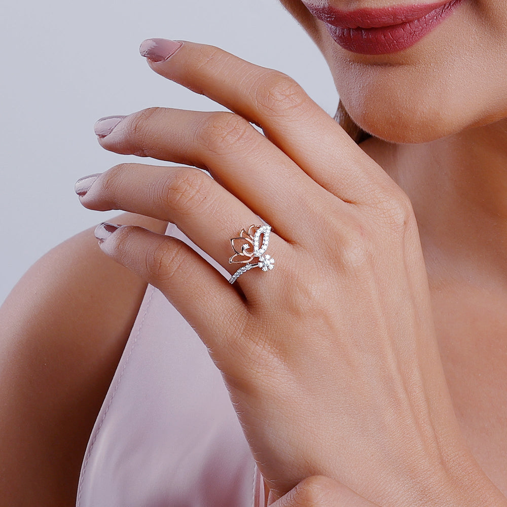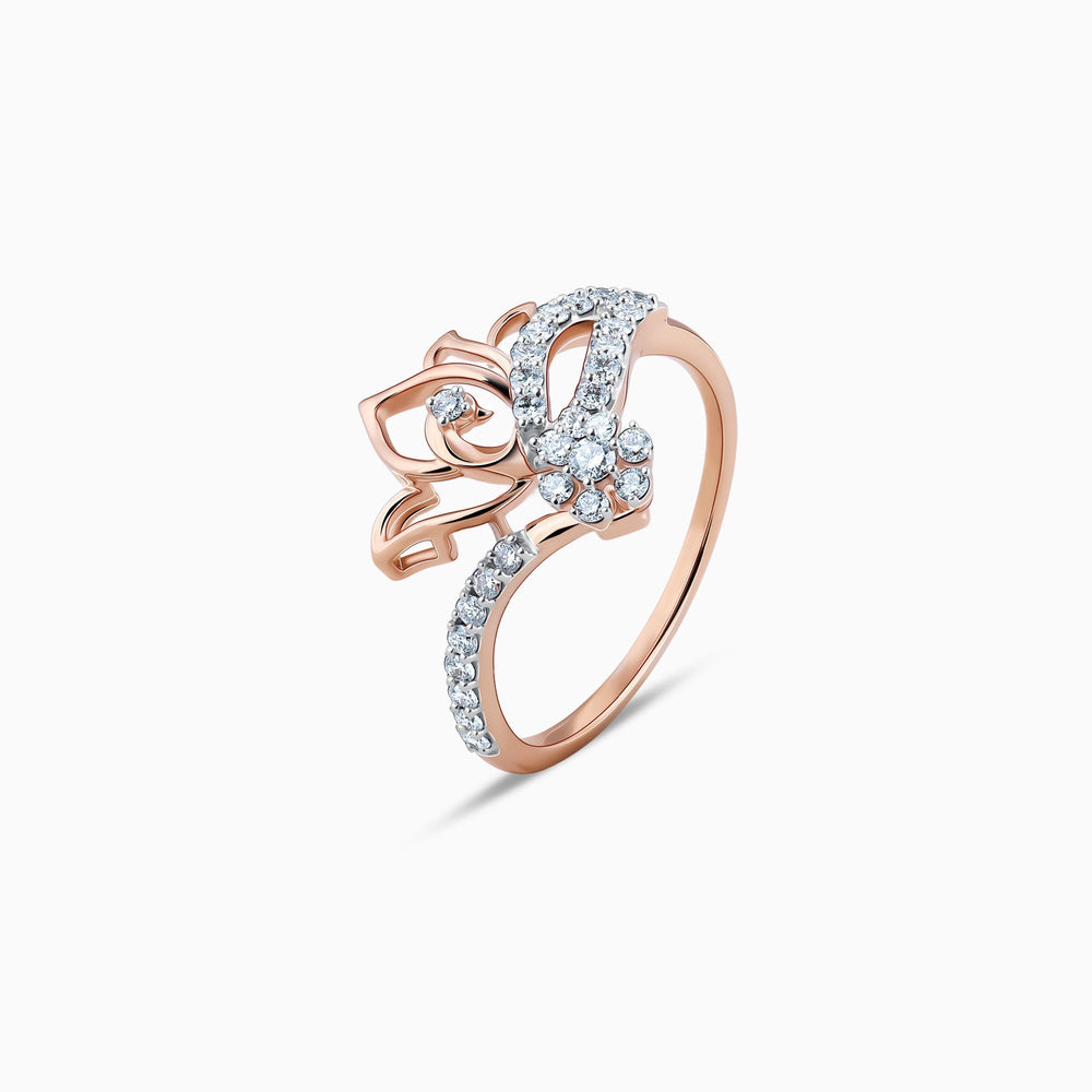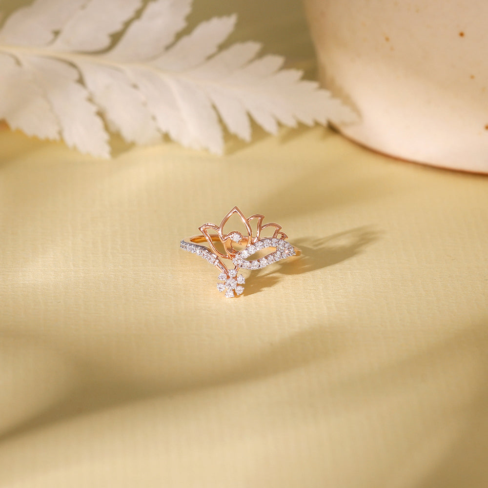 This pure rose gold ring features a lotus motif with lab-grown diamonds.