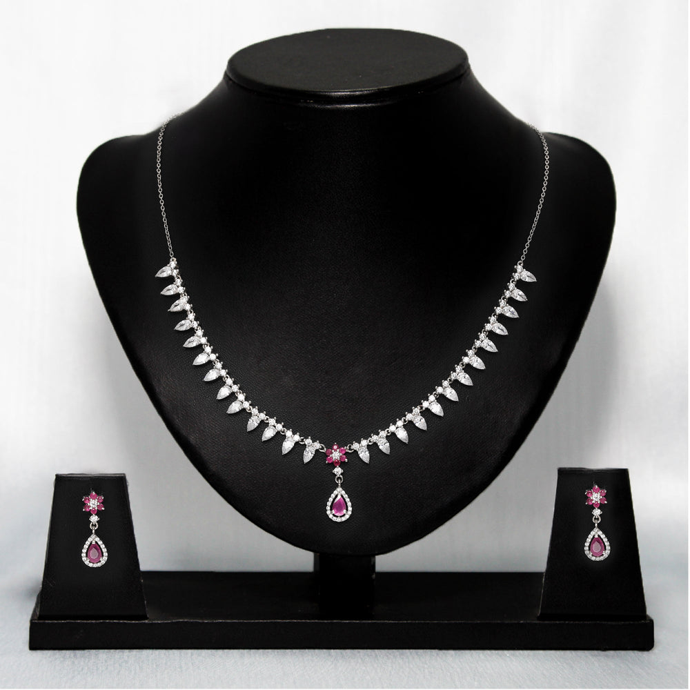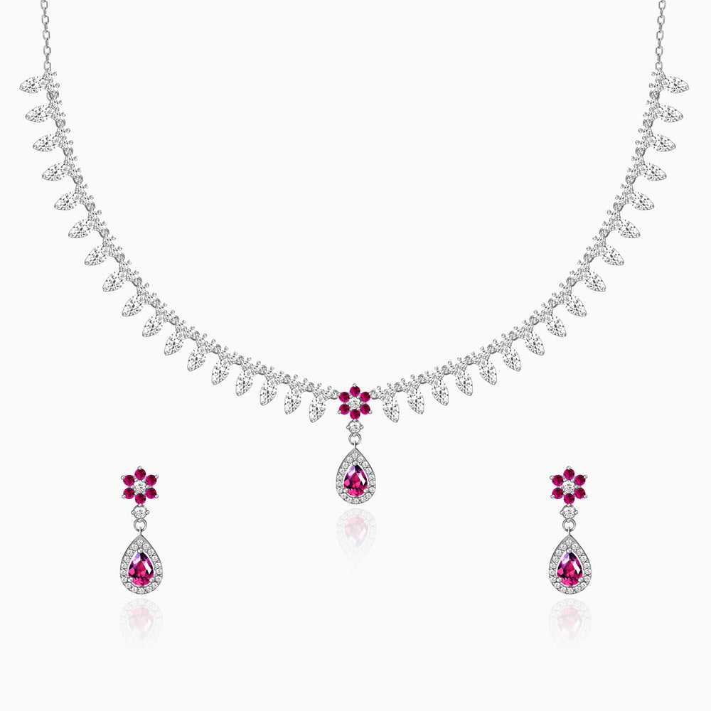 Silver Pink Flower Drop Solitaire Set is handcrafted with love, just for YOU. The pink flowers are made complete with the pop drop surrounded by the shiniest zircons- a complete package.