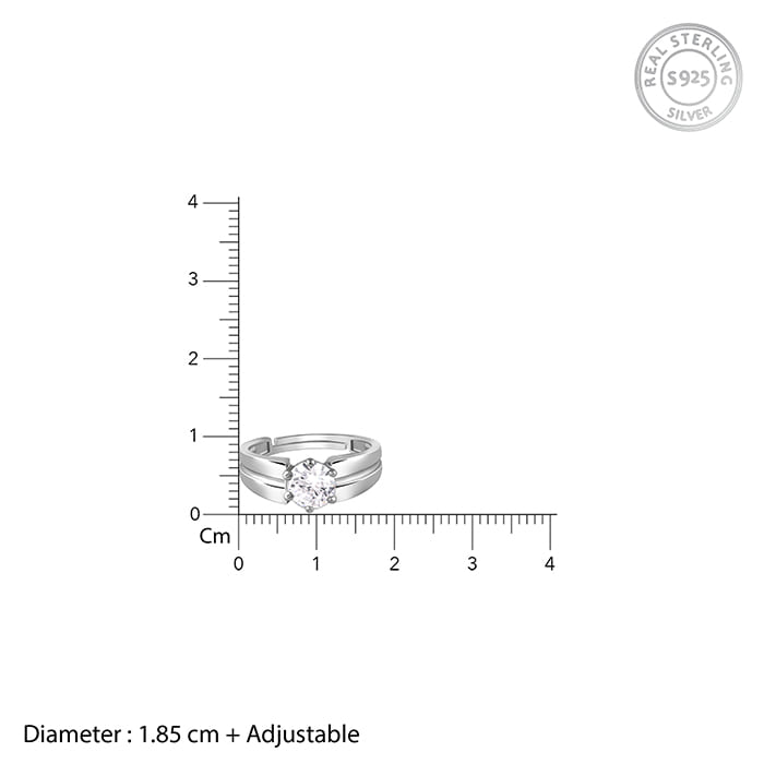This silver ring has a big zircon in a six-prong setting at the centre of a band that features a wider shank.