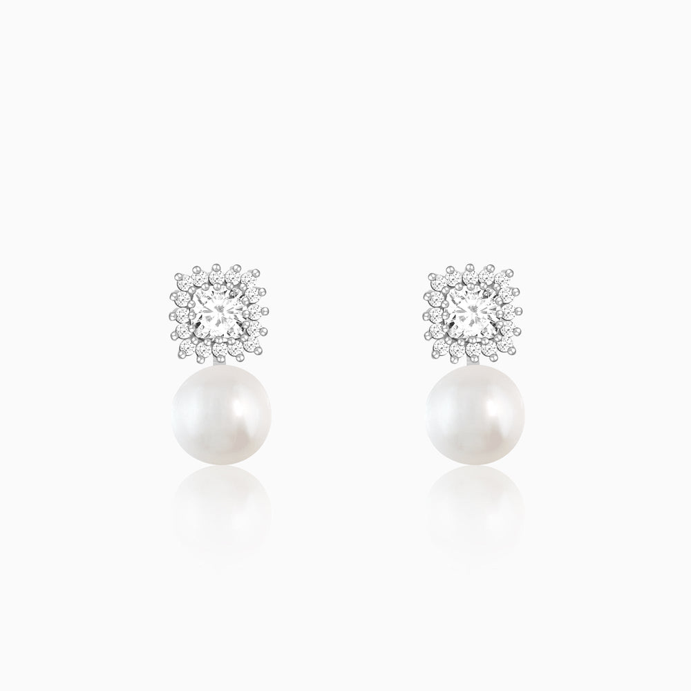 Pearls make everything better and zircons make everything shine. The Silver Studded Drop Pearl Studs are a perfect combination of both.
