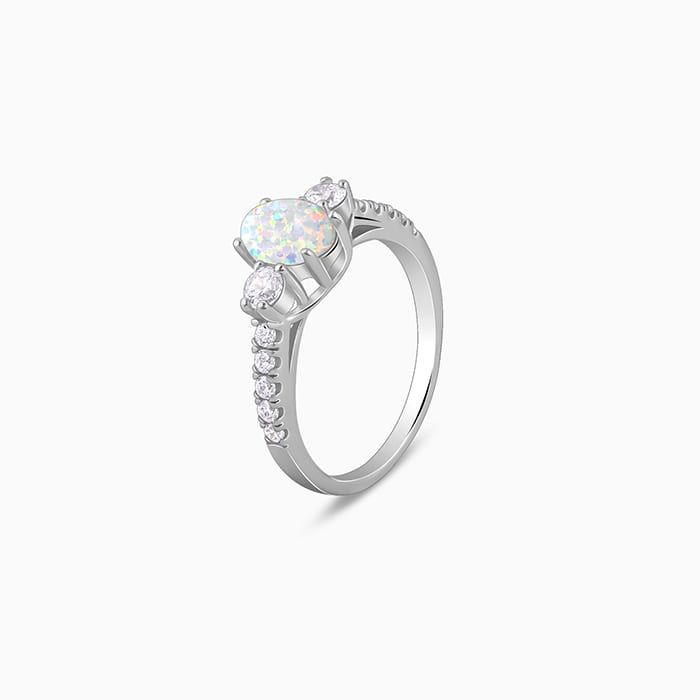 This silver ring features an oval design with an opal stone at the centre and zircons on both sides, studded in the band. Let the stunning elegance of GIVA Sky High inspire you to chase every dream and celebrate every milestone.