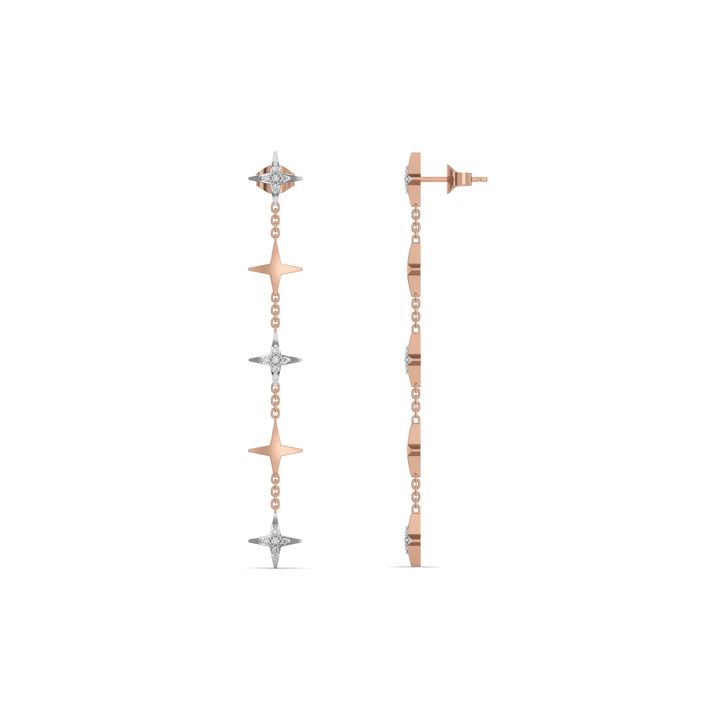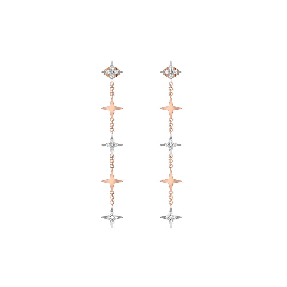 Adorned with 0.23 ct of shimmering lab-grown diamonds and plated in radiant 18kt vermeil gold, the Starlight Shower Duster Earrings evoke the magic of celestial trails. Their cascading design and flowing chains mimic the beauty of a meteor shower, making them the ultimate statement piece for a glamorous night out.